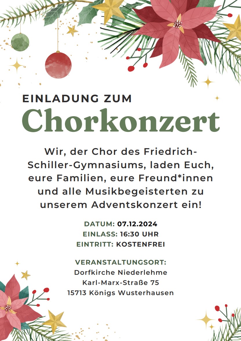 « Alle Veranstaltungen Diese Veranstaltung hat bereits stattgefunden. Weihnachtskonzert des Schillerchores 7. Dezember 2024 um 17:00 Uhr « Weihnachtsfeier im Wasserfreund Gottesdiens am 4. Advent » Weihnachtskonzert des Schillerchores um 17.00 Uhr + zu Google Kalender hinzufügen+ Exportiere iCal Details Datum: 7. Dezember 2024 Zeit: 17:00 Uhr Veranstaltungskategorie: Konzert Veranstaltungsort Kirche Niederlehme